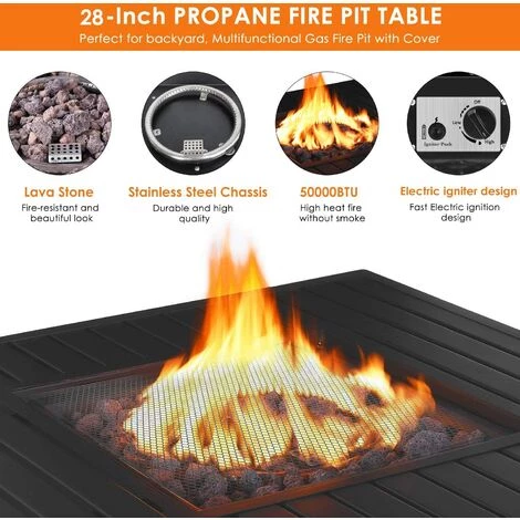 AICOK 28 » Foyers à Gaz Extérieurs Et Braséros,Chauffe Terrasse Gaz,Gaz Feu Cheminée,72*72*67cm,14.5kw,avec Housse De Protection Imperméable & Pierres De Lave & Grille De Protection,pour Jardin Terrasses