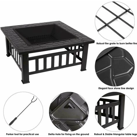 PEDY Brasero Exterieur Avec Poêle Chauffant En Acier Noir Et Four Carré 81 * 81 * 44cm