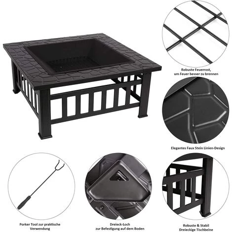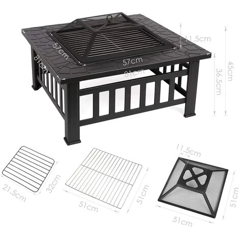 AICOK Brasero Exterieur 81*81*44cm,Terrasse BBQ,Brasero Barbecue,avec Grill,Couverture Étanche,Couvercle De Protection Contre Les Étincelles