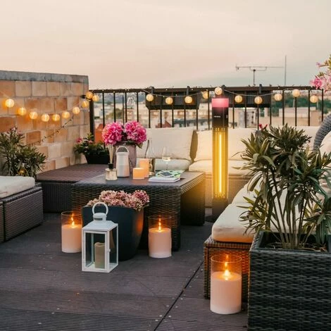 Le parasol chauffant radiant est parfait pour une utilisation dans les vérandas, les maisons individuelles ou les stands de vente. Grâce au boîtier résistant aux éclaboussures, l’appareil de chauffage peut également être utilisé à l’extérieur, par ex. sur les balcons ou les terrasses. Toutes les fonctions peuvent être commandées via le panneau de commande sur l’appareil – et l’affichage LED intégré indiquera, par exemple, le niveau de chauffage actuellement réglé.