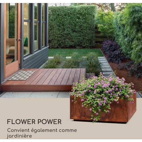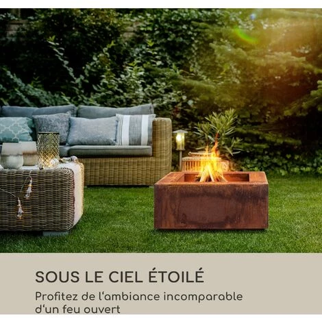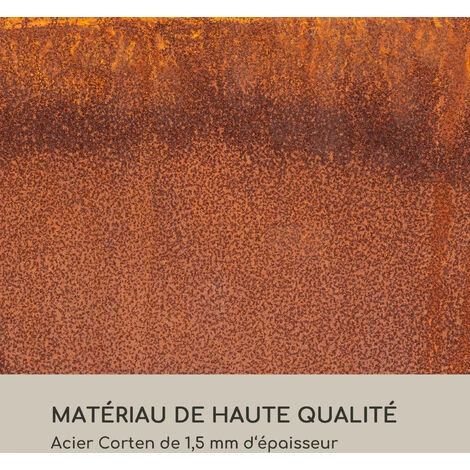 Ce beau brasero de 60 x 60 cm est entièrement en acier Corten et présente un aspect particulièrement naturel grâce à sa couleur rouille. La construction est protégée de l’eau et du gel et est relativement légère grâce à une épaisseur de matériau de 1,5 mm. Il promet une vue magnifique, notamment avec du bois de chauffage, et protège de manière fiable contre les marques de brûlure et les trous dans le jardin. Si vous n’avez pas envie de flammes, vous pouvez aussi utiliser le blumfeldt Desert Rust Square L comme bac à fleurs et donner un nouveau souffle à votre jardin.