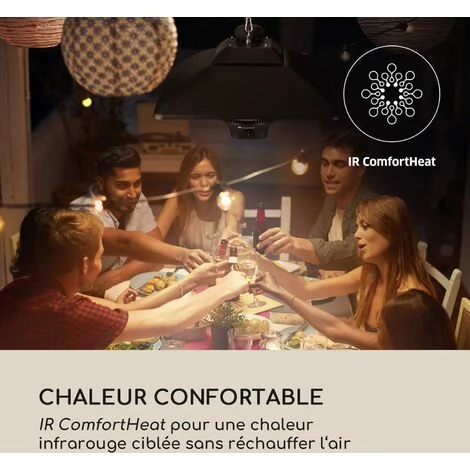 Veuillez noter : le chauffage par rayonnement ne convient qu’à une utilisation en extérieur.
