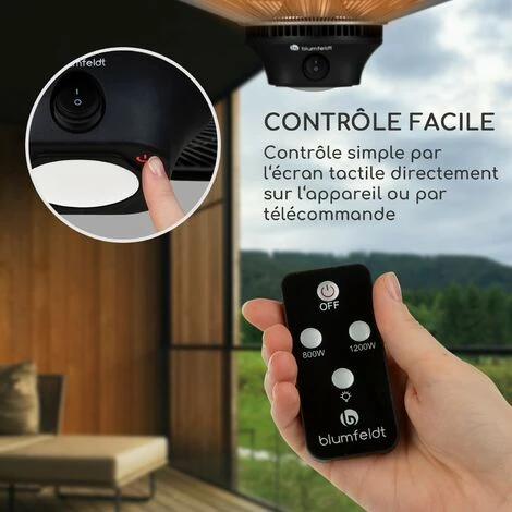 Le radiateur blumfeldt Heat Hexa se suspend facilement au plafond avec une chaîne de 50 cm de long et vous fournit rapidement et efficacement jusqu’à 2000 watts de puissance de chauffage, à vous et à vos invités. Le système IR ComfortHeat fournit non seulement de la chaleur très rapidement, mais avec son réflecteur en aluminium très efficace et son rayonnement infrarouge à grandes ondes, il la transmet spécifiquement aux personnes et aux objets à proximité sans réchauffer l’air ambiant. Profitez d’une chaleur douillette dès la première seconde ! En touchant délicatement l’écran tactile intégré, choisissez entre les trois niveaux de chaleur – 800, 1200 ou 2000 watts – en quelques secondes et réagissez très facilement aux besoins de vos invités. Ou bien contrôlez facilement la lampe chauffante avec sa télécommande pratique. Planifiez un dîner sur le balcon ou la terrasse sans vous soucier de la température, car dès la mise en marche, les éléments chauffants halogènes génèrent une chaleur agréable, confortable et sûre sans longue phase de préchauffage. Fabriqué en acier, le radiateur infrarouge hexagonal blumfeldt Heat Hexa est non seulement solide, mais aussi agréable à l’œil. Sa lampe LED intégrée s’allume séparément et assure une luminosité aux heures sombres. Pour une utilisation en toute sécurité à l’extérieur, le boîtier est étanche aux éclaboussures selon IP34 et peut également s’utiliser les soirées humides sans aucun problème.