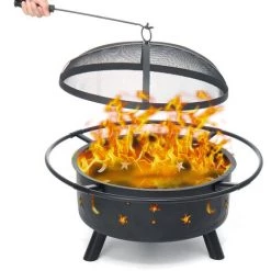 ZEBRAA Foyer De Chauffage Brasero Exterieur Jardin Barbecue BBQ Avec Couvercle + Baton 76*51cm
