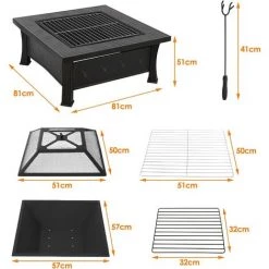 AICOK Brasero Barbecue Rectangulaire Pour Jardin Et Terrasse -81 * 81 * 44cm – Noir