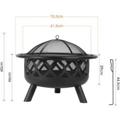 AICOK Bol à Feu Foyer Brasero Avec Grille De Cuisson Charbon De Bois Couvercle Ø56,5 * 50cm,