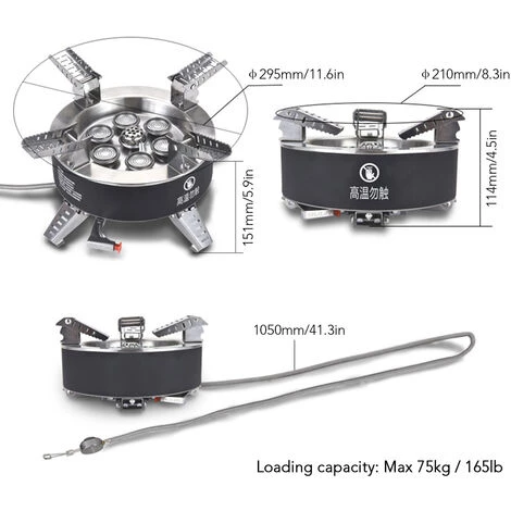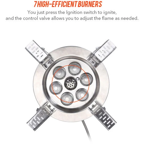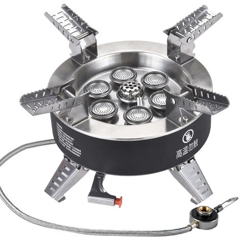 Réchaud pliable de 18000W avec 7 brûleurs en acier inoxydable à haut rendement.