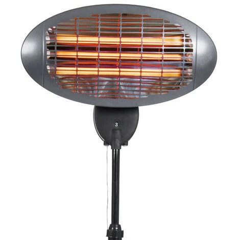 Radiateur électrique d’extérieur à quartz avec support télescopique. Vous pouvez en profiter à tout moment de l’année. Il suffit de le brancher et ses trois tubes radiants en quartz diffuseront instantanément de la chaleur. Ce chauffage de terrasse vous offre la possibilité de régler facilement la hauteur, grâce à sa barre télescopique, ainsi que l’angle pour diriger la chaleur où vous le souhaitez jusqu’à 45º. Vous pouvez également choisir entre trois réglages de puissance (650, 1350 et 2000W) en tirant sur l’interrupteur situé sur le côté. Sa base extra large est lourde pour la stabilité et la sécurité et est conçue pour être inclinable à 15º. Cette solution de chauffage au sol bénéficie d’une protection IPX4 qui la rend résistante à l’humidité et à l’eau. Oubliez les modèles à gaz et optez pour des chauffages électriques rapides et efficaces !