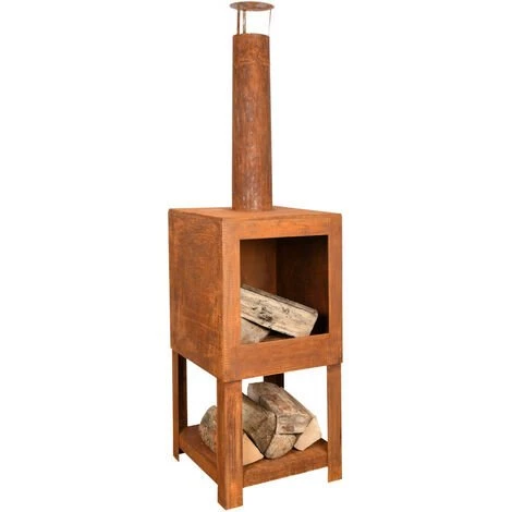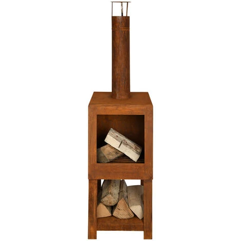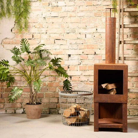 Ajoutez de l’ambiance, de la lumière et de la chaleur à votre espace de vie extérieur avec cette cheminée effet rouillé ! Rassemblez votre famille et vos amis pour un rassemblement autour d’un feu de camp avec cette impressionnante cheminée avec rangement de bois. Cette cheminée rustique est faite d’acier avec une jolie finition rouillée. Vous pouvez stocker votre bois de chauffage sur le support de bûches intégré en dessous. Cette cheminée conviendra à n’importe quelle décoration extérieure et sublimera votre jardin. Fabriqué en Europe Matière : Acier Dimensions : 38,4 x 38,4 x 136,3 cm
