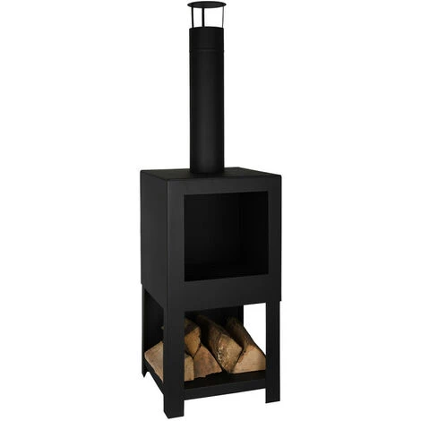 Ajoutez de l’ambiance, de la lumière et de la chaleur à votre espace de vie extérieur avec cette cheminée au design épuré et contemporain ! Rassemblez votre famille et vos amis pour un rassemblement autour d’un feu de camp avec cette impressionnante cheminée avec rangement de bois. Cette cheminée contemporaine est faite d’acier aux lignes épurées. Vous pouvez stocker votre bois de chauffage sur le support de bûches intégré en dessous. Cette cheminée conviendra à n’importe quelle décoration extérieure et sublimera votre jardin. Fabriqué en Europe. Matière : Acier Dimensions : 38,4 x 38,4 x 136,3 cm