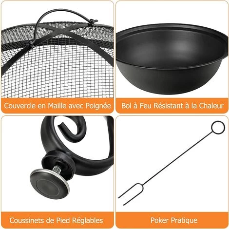 - 【Design sûr et bien pensé 】notre plateau de table spacieux avec surface antidérapante est adapté pour mettre des boissons et des collations. Et le pare-étincelles en maille peut vous protéger des braises volantes. En outre, le tisonnier vous offre un confort ultime, ce qui facilite et sécurise le contrôle du feu et le levage du couvercle.