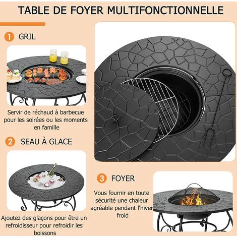 - 【Design 4 en 1 pour un plaisir sans fin 】cette table de foyer multifonctionnelle peut être utilisée comme brasero ou barbecue pendant les hivers froids, vous pouvez également la remplir de glace et l’utiliser comme glacière pendant les étés chauds. Alliant à la fois beauté esthétique et utilisation pratique, le couvercle amovible permet de passer facilement à une table à manger.