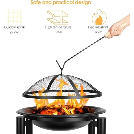 【Sûr et pratique】avec un couvercle de protection contre les étincelles pratique, empêcher les étincelles et les corps étrangers de voler. Avec les 2 clips anti-brûlure, vous pouvez soulever la grille chaude du gril facilement et en toute sécurité. Et 1 tisonnier: avec lequel la grille de protection peut être retirée si elle est trop chaude. Il y a un cadre d’armoire carré sous le panier à feu et vous pouvez mettre du bois sur le cadre d’armoire carré, ce qui est très pratique.