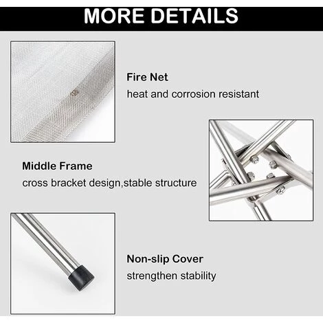 【SIMPLE À ASSEMBLER】Aucun outil supplémentaire n’est requis.Insérez simplement les tubes dans le cadre central,puis inclinez-les transversalement et insérez enfin la bague de verrouillage dans les tubes à travers le maillage.Les étapes d’assemblage sont très simples et n’ajouteront aucun problème à votre camping.La taille du brasero de camping assemblé est de : 42 x 42 x 32 cm.
