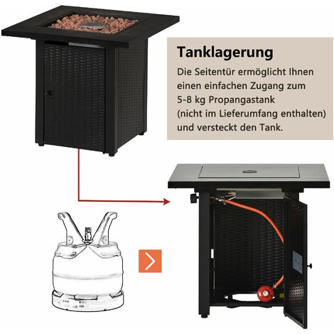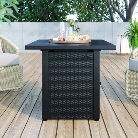 FVO Table De Foyer Extérieur Au Gaz Propane/butane, Avec Pierre De Lave, Tôle D’acier Pour Finition En Osier, D’Extérieur Pour Feu De Camp, Table Basse De Cour De Villa, Table De Barbecue, Brasero De Chauffage Chez L’Habitant, Table De Foyer50000 BTU
