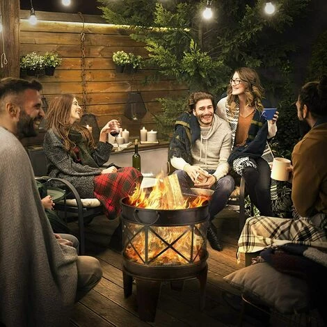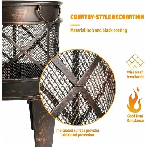 Gizcam Brasero De Jardin Ø 42 Cm Avec Poignées, Brasier Extérieur Pour Jardin, Portable Cheminée Foyer Extérieur, Multifonction Brasero Foyer, Avec Fourche, Pour Camping, Feu De Camp, Terrasse, Jardin