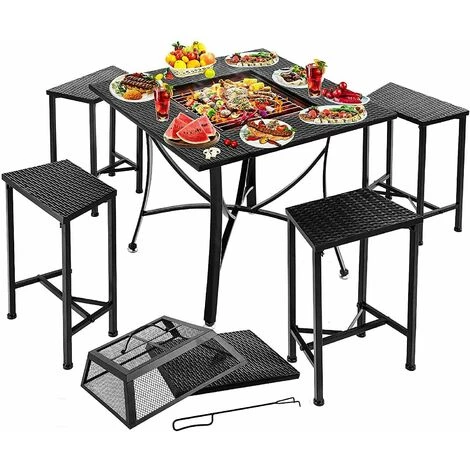 - 【Multi-fonction】Table de barbecue terrasse est équipé d’un filet à griller, qui peut être utilisé pour des barbecues sur le toit ; en hiver, tout le monde peut s’asseoir et griller le feu ; lorsque le brasier n’est pas utilisé, il peut être transformé en un table à manger avec une couverture assortie.