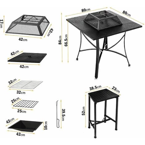 - 【Bon matériau】Table braséro est recouvert d’une peinture résistante aux hautes températures et à la rouille, résistance aux hautes températures de 500 , le poids de chaque tabouret est de 3,1 kg, charge 90 kg, le poids de la table est de 13,4 kg, charge 20kg.