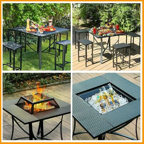 - 【Taille raisonnable】La taille de la table de brasero exterieur est de 81 * 81 * 65,5 cm et la taille du tabouret est de 39 * 24 * 53 cm.Il convient à une variété de hauteurs et peut être utilisé pour des réunions de famille ou des barbecues avec des amis.