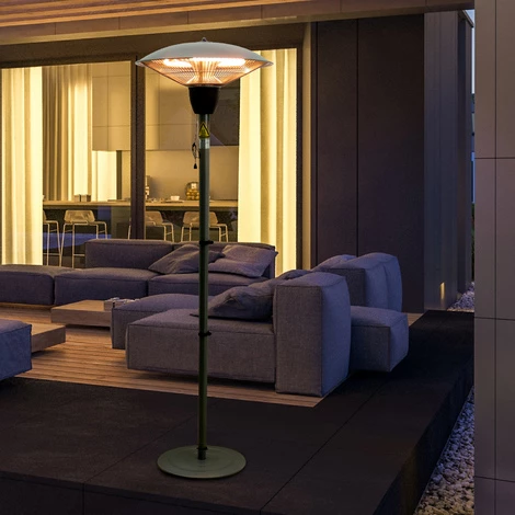 Ce splendide parasol chauffant infrarouge vous permettra de passer d’agréables soirées à tout moment de l’année sur votre terrasse ou balcon ! D’une puissance de 1500 W, vous pourrez l’installer où vous préférez et ainsi profiter de sa chaleur généreusement diffusée (capacité de chauffage d’une surface de 9 m² environ).