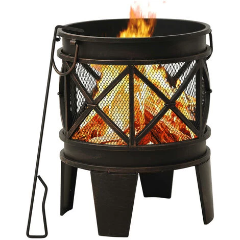 Ce foyer de style rustique sera un supplément décoratif et ajoutera de l’ambiance à votre jardin ou patio, tout en vous réchauffant lorsqu’il ferra plus froid pendant la soirée. Fabriqué en acier, ce foyer robuste avec peinture résistante à la chaleur est excellent pour absorber et irradier la chaleur. Doté d’un grand bol profond, ce foyer permet un grand feu pour que vous et votre famille puissiez en profiter pendant des heures. La maille vous permet de regarder le feu brûlant et enferme le feu pour la sécurité ainsi que pour empêcher les étincelles et les débris de s’envoler. De plus, chaque côté dispose d’un anneau pratique pour vous de le transporter facilement. Le tisonnier en acier inclus peut être utilisé à la fois pour retirer le couvercle grillagé et pour réarranger les bûches. Remarques importantes : il ne peut être utilisé qu’à l’extérieur. Ne pas toucher le produit lorsqu’il y a encore du bois à l’intérieur ou peu après.