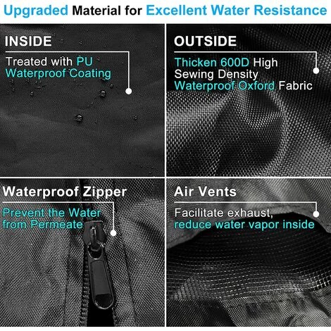 【Matériau amélioré】 Le couvercle du radiateur est traité avec un revêtement imperméable en PU environnemental et la couche extérieure est en tissu Oxford 600D épais, doté d’une densité de matériau élevée et d’une bonne résistance à l’usure. La couverture peut résister à plus de 15 000 pressions d’eau. L’eau glissera rapidement et ne pénétrera pas dans la doublure en cas de pluie.