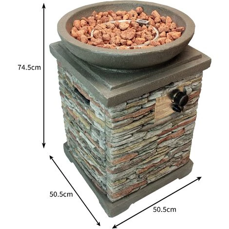 Ce foyer de conception traditionnelle est doté d’un cadre attrayant style pierre d’oxyde en magnésium avec un lit de combustible de pierre de lave sur le dessus et est sûr de compléter n’importe quel espace extérieur.
