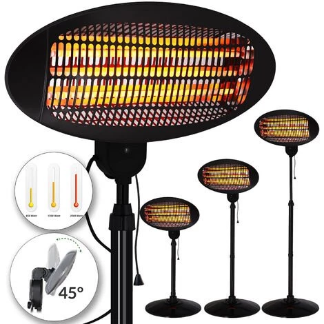 Grâce à son manche télescopique pratique, vous pouvez ajuster la hauteur du parasol chauffant de 132 cm à max. 210 cm. Par ailleurs, la tête du dispositif s’incline également jusqu’à un angle de 45°.