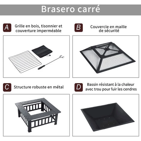 – Dim. brasero : 60,5L x 60,5l x 11,5H cm