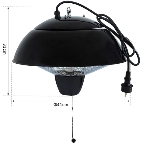 Ce superbe chauffage radiant infrarouge Outsunny vous permettra de passer d’agréables soirées à tout moment de l’année sur votre terrasse ou balcon ! Fourni avec un kit de suspension, vous pourrez l’accrocher ou vous préférez et ainsi profiter de sa chaleur généreusement diffusée (capacité de chauffage d’une surface de 9 m² environ).