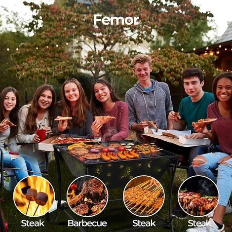 PEDY Brasero De Jardin, Foyer Extérieur, Brasero Exterieur, Avec Filet Grillé & Couverture En Treillis Lgnifuge &Tisonnier, Foyer De Chauffage/ Barbecue, 62*61*61 Cm,pour Jardin, Terrasse, Patio
