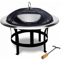 GARDEBRUK Brasero En Acier Inoxydable Rond Jardin Extérieur Avec Grille Ø 75cm Foyer Ø 75 Cm