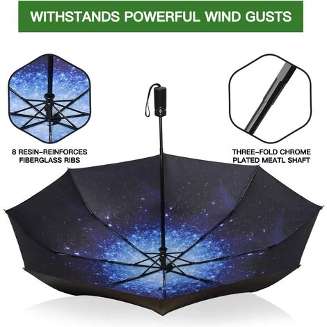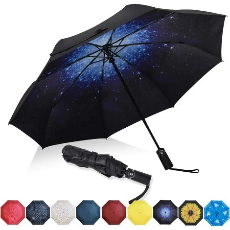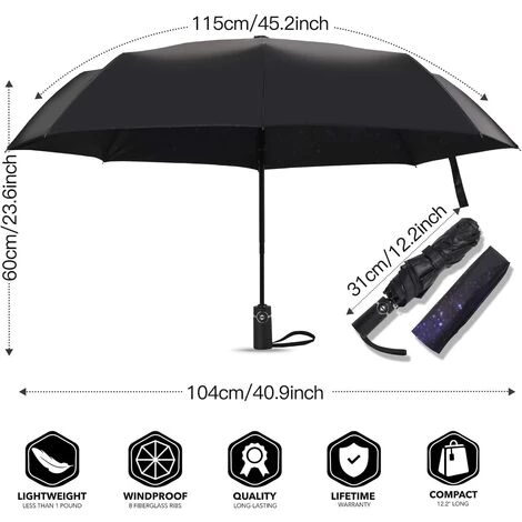 Excellente résistance à l’eau : ce parapluie de voyage est fabriqué en tissu ultra résistant haute densité 210 fils et un parapluie de haute qualité avec revêtement en téflon pour vous protéger des averses les plus dures, même des fortes pluies et des vents forts.