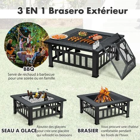 - ★BRASERO EXTERIEUR 3 EN 1★Le brasero multifonction est un excellent choix pour le chauffage extérieur, le barbecue, la glacière. Le brasero est équipé d’un filet de barbecue de 51 x51 cm, qui peut être utilisé comme grille. Grâce au bol de grande capacité, en enlevant la grille de cuisson, il fait office de brasero de jardin permettant de se réchauffer.
