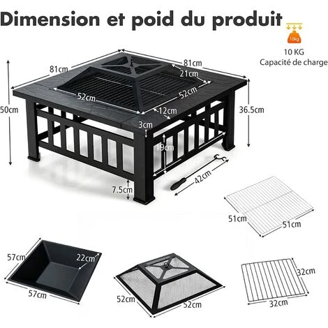 - ★MULTI-USAGES★Le design carré moderne avec ornement des pierres artificielles donne une atmosphère magnifique et chaleureuse. Ce barbecue brasero élégant peut répondre aux besoins d’un rassemblement de plusieurs personnes et est idéal pour les nuits du feu de joie ou les barbecues dans le patio/jardin/cour.