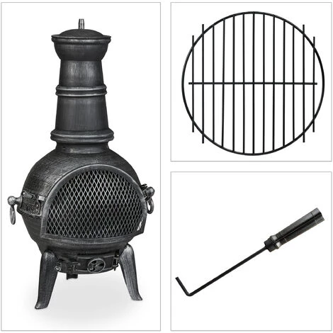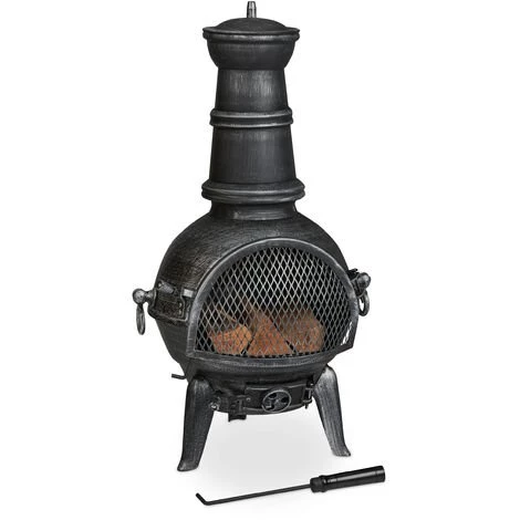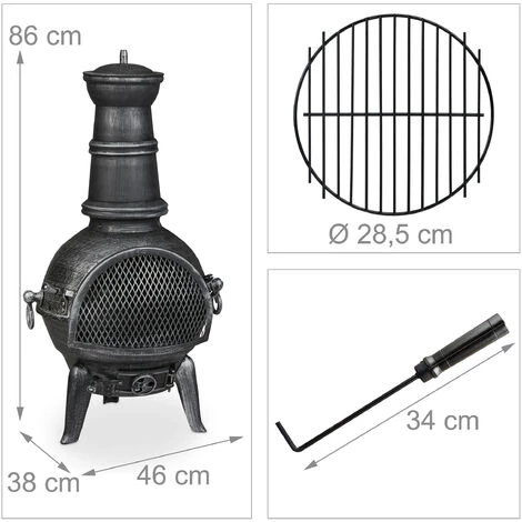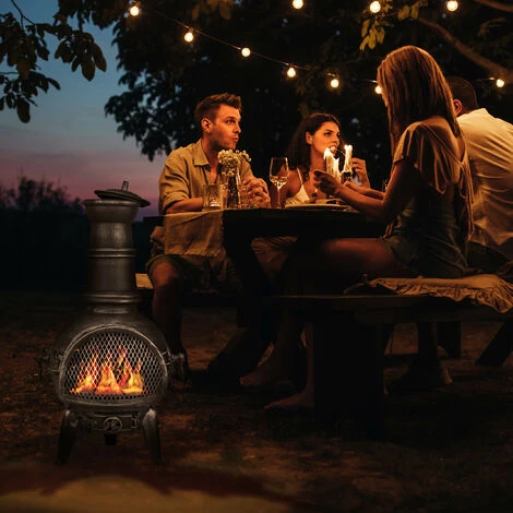 Passez dedouces soirées d’été à l’extérieur avec ce poêle de jardin en anthracite. Lacheminée de terrasse en fonte vous permet de vous détendre dans le jardin.Asseyez-vous près du feu crépitant et réchauffez-vous. Le brasero mexicaindécoratif réduit les étincelles grâce au pare-étincelles. Vous pouvez égalementcontrôler l’intensité du feu grâce à la valve d’air réglable. Grâce autisonnier pratique, vous pouvez facilement réajuster le matériau chauffant.
