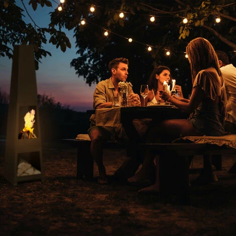 Quoi demieux que de s’asseoir un soir d’été avec amis ou famille autour d’un feu ? Le brasero de jardin noir au design épuré offre non seulement de lachaleur, mais attire aussi tous les regards. La grille du foyer assure unecirculation d’air constante, ce qui permet d’attiser le feu rapidement avec letisonnier. La partie inférieure est idéale pour stocker le bois de chauffage,de sorte que vous pouvez toujours ajouter du bois.