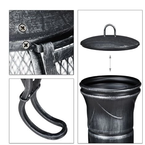 Qu’est-ce qu’il y a de plus beau que s’asseoir un soir d’été avec amis ou famille autour d’un feu crépitant ? Le brasero de jardin en design gris-inca avec des pieds courbés offre non seulement de la chaleur, mais attire aussi le regard. La grille contribue à une bonne circulation de l’air. Le pare-étincelles protège contre la projection dangereuse d’étincelles. Afin de pouvoir remettre du bois la porte avec le tisonnier se laisse ouvrir et fermer. Le brasero terrasse est une source de chaleur idéale pour des fêtes en plein air.