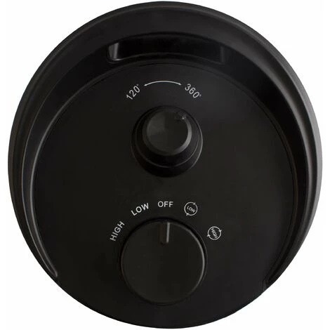 Il est commandé par le panneau de commande situé sur le dessus de l’appareil. Vous pouvez choisir entre 2 niveaux de chauffage, c’est-à-dire que les tubes en fibre de carbone s’allument soit pour un niveau (bas) ou bien les deux niveaux (haut). Avec le deuxième bouton de commande, vous pouvez choisir entre différents degrés d’oscillation. Cela vous permet de déterminer individuellement la puissance calorifique et le rayon à chauffer.