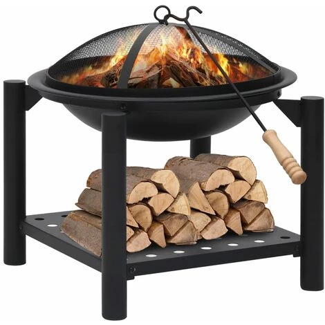 Ce foyer sera un supplément décoratif et ajoutera de l’atmosphère à votre jardin ou patio, tout en vous réchauffant lorsqu’il ferra plus froid pendant la soirée. Fabriqué en acier, le foyer est excellent pour absorber et rayonner la chaleur. Doté d’un grand bol, ce foyer permet un grand feu pour que vous et votre famille puissiez en profiter pendant des heures. La maille vous permet de regarder le feu brûlant et enferme le feu pour la sécurité ainsi que pour empêcher les étincelles et les débris de s’envoler. De plus, il y a un anneau pratique dans le couvercle en maille pour que vous puissiez le transporter facilement. Le tisonnier inclus peut être utilisé à la fois pour retirer le couvercle en maille et pour réorganiser les bûches. De plus, l’étagère offre un espace de stockage supplémentaire pour mettre plus de bois de chauffage. Remarques importantes : il ne peut être utilisé qu’à l’extérieur. Pour éviter les blessures et les brûlures, ne touchez pas le produit lorsqu’il y a encore du bois à l’intérieur ou peu de temps après.