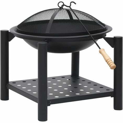 Ce foyer sera un supplément décoratif et ajoutera de l’atmosphère à votre jardin ou patio, tout en vous réchauffant lorsqu’il ferra plus froid pendant la soirée. Fabriqué en acier, le foyer est excellent pour absorber et rayonner la chaleur. Doté d’un grand bol, ce foyer permet un grand feu pour que vous et votre famille puissiez en profiter pendant des heures. La maille vous permet de regarder le feu brûlant et enferme le feu pour la sécurité ainsi que pour empêcher les étincelles et les débris de s’envoler. De plus, il y a un anneau pratique dans le couvercle en maille pour que vous puissiez le transporter facilement. Le tisonnier inclus peut être utilisé à la fois pour retirer le couvercle en maille et pour réorganiser les bûches. De plus, l’étagère offre un espace de stockage supplémentaire pour mettre plus de bois de chauffage. Remarques importantes : il ne peut être utilisé qu’à l’extérieur. Pour éviter les blessures et les brûlures, ne touchez pas le produit lorsqu’il y a encore du bois à l’intérieur ou peu de temps après.