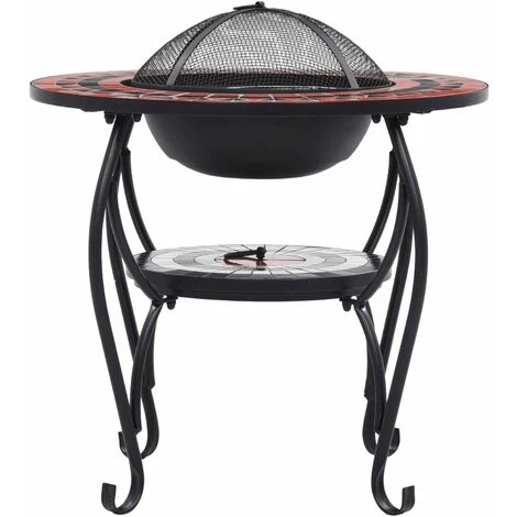 Ce foyer fera un atout décoratif et aujoutera à l’atmosphère de votre jardin ou décoration de patio, tout en vous réchauffant lorsqu’il ferra plus froid pendant la soirée. Fabriqué en acier, le bol de foyer est excellent pour l’absorption et la radiation de la chaleur. Il peut être utilisé pour brûler du bois sec, des bûches ou du charbon de bois. Le foyer est supporté par un support à quatre pattes. Le grillage de sécurité inclus vous permet de surveiller le feu qui brûle, et entoure le feu pour la sécurité ainsi que pour empêcher les étincelles et les débris de s’envoler. L’outil de tisonnier peut être utilisé pour retirer le couvercle du grillage et pour réarranger les bûches ou le charbon. De plus, la table de foyer peut également être utilisée comme barbecue. Sa surface ronde en céramique offre un endroit parfait pour les boissons et les grillades.