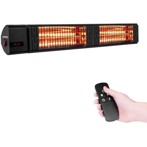 Nous aimons tous profiter de l’extérieur le soir, dès que les jours se prolongent. Malheureusement en début de soirée les températures se refroidissent rapidement et vous rentrez vite à l’intérieur. Avec ce chauffage VONROC, vous pourrez à nouveau profiter de températures agréables lorsque les températures sont plus froides. Le chauffage de terrasse Volsini de 3000W est un chauffage de patio équipé d’une lampe ‘golden amber low glare’. Cette lampe émet moins de lumière que d’autres lampes, mais assure une grande chaleur et une plus longue durée de vie. Le chauffage est livré avec une télécommande qui permet d’allumer et d’éteindre le radiateur, de régler les niveaux de chaleur et la minuterie. L’écran LCD situé à l’avant de l’appareil vous permet de lire facilement le niveau de chaleur sélectionné et le nombre d’heures de fonctionnement de la minuterie.